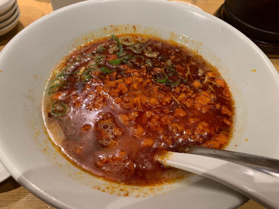 最初はそうでもないかな?と思いましたが、じわじわからさが増していき、ちょうど良い辛味。ただ、上に乗ってる天カスのせいか、スナック菓子のような味で、一風堂の美味しさが消えてる気が…