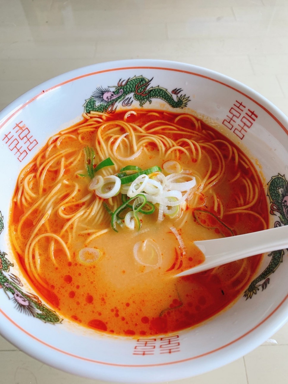 赤いけど辛さは控え目。カイエンヌペッパーを振りかけて食べました。豚骨味噌スープで美味しいですが、ちょっとしょっぱい。