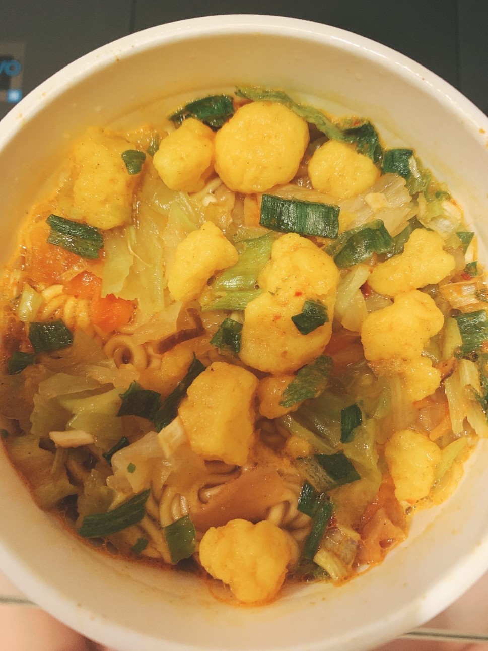 激辛ではないけれど、そこそこに辛味があります。キムチ感はあまり感じられませんが、そこそこに美味しく、お値段の割にはいいな、と思います。