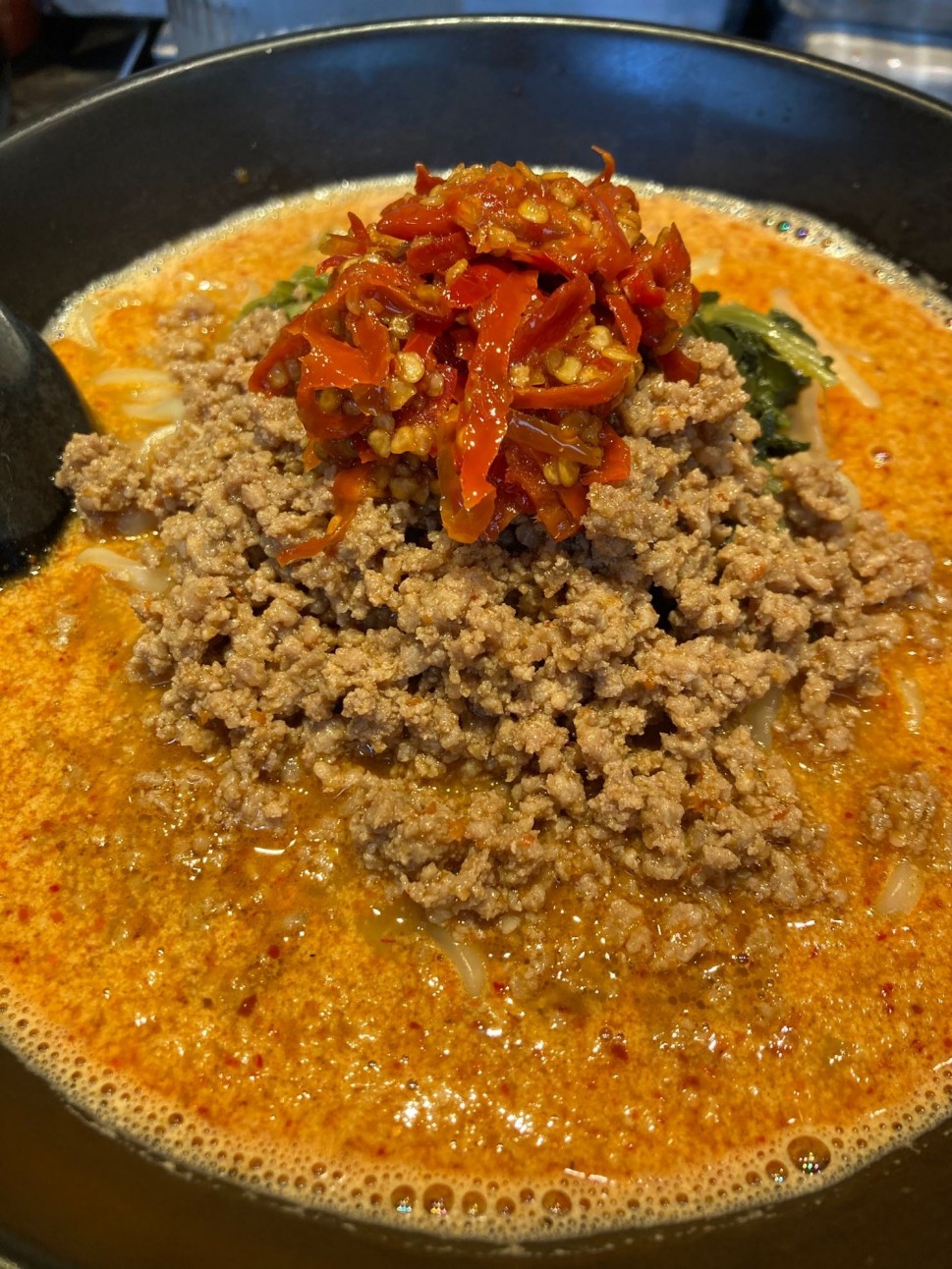 ファーストコンタクトで、辛さパンチ力に圧倒されるかと思いきや濃く深い旨みが甘さにも感じられて即完食。