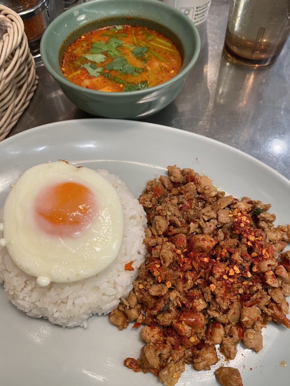 ガパオとスープの辛さが追い打ちで相乗的に攻めてくる!