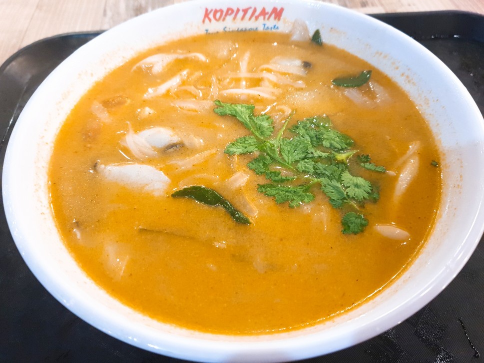 シンガポールのフードコートにある🇹🇭料理店です。ココナッツミルクが入っている事と、酸味も結構あるので辛味は抑えられますが、そこそこは辛味を感じます。旨酸っぱ辛って感じで、丼結構大きいんですが危うく完飲しそうになりました。😅