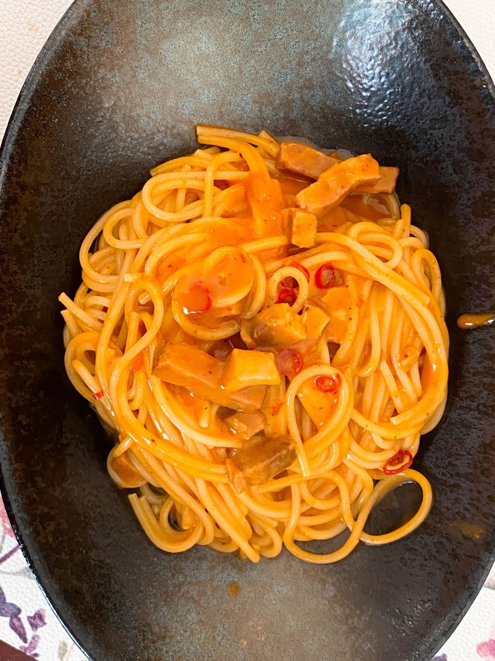 卵とチーズが香り、食べるほどに辛さは蓄積します。