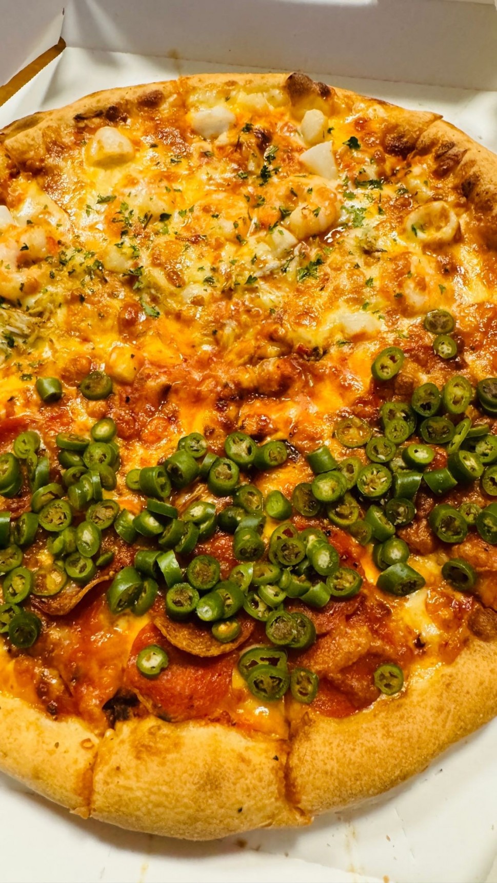 青唐辛子セラーノペッパーが大量に乗ったピザです🍕