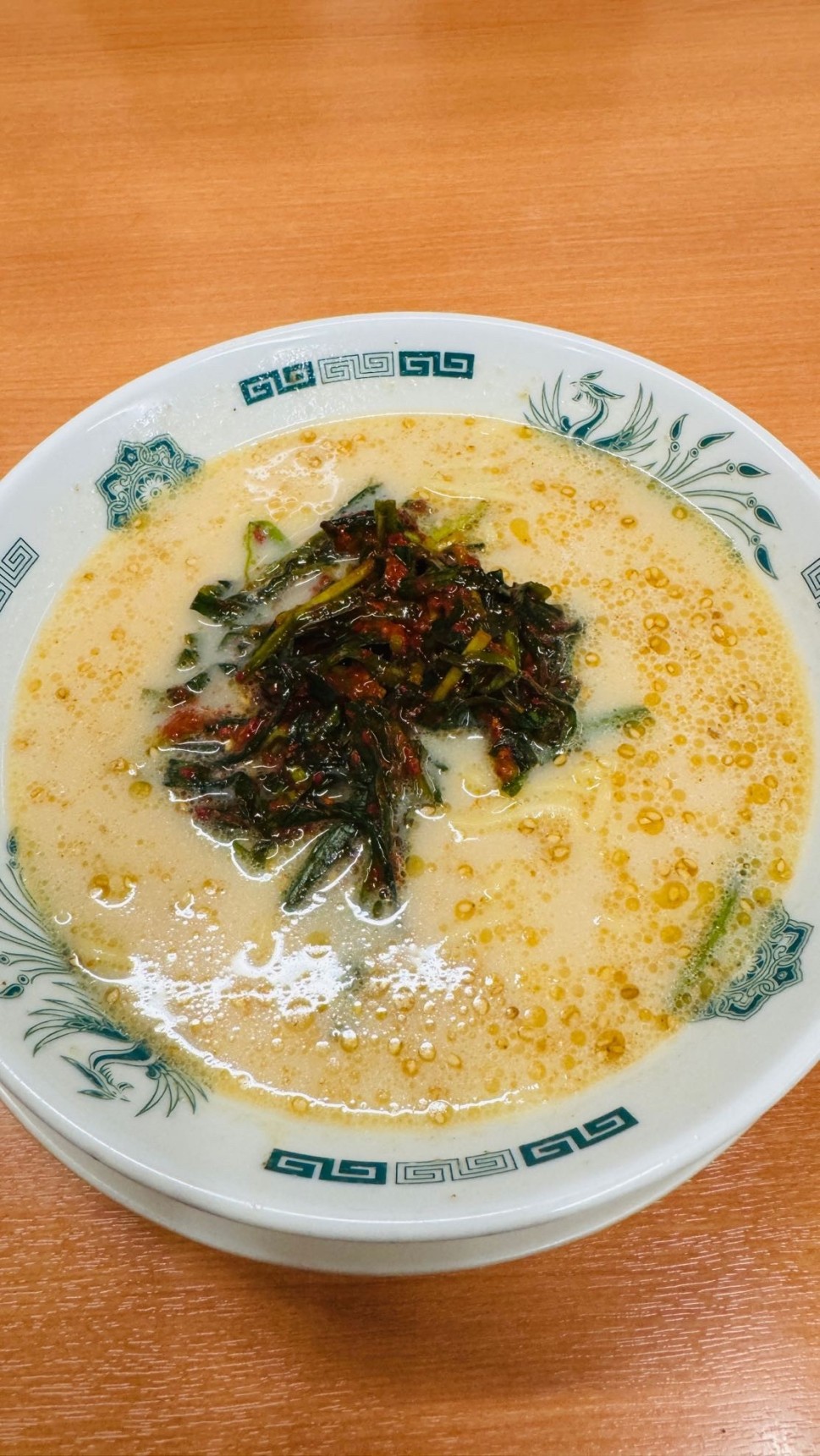 美味いとんこつラーメンにニラのキムチが乗ってます🍜