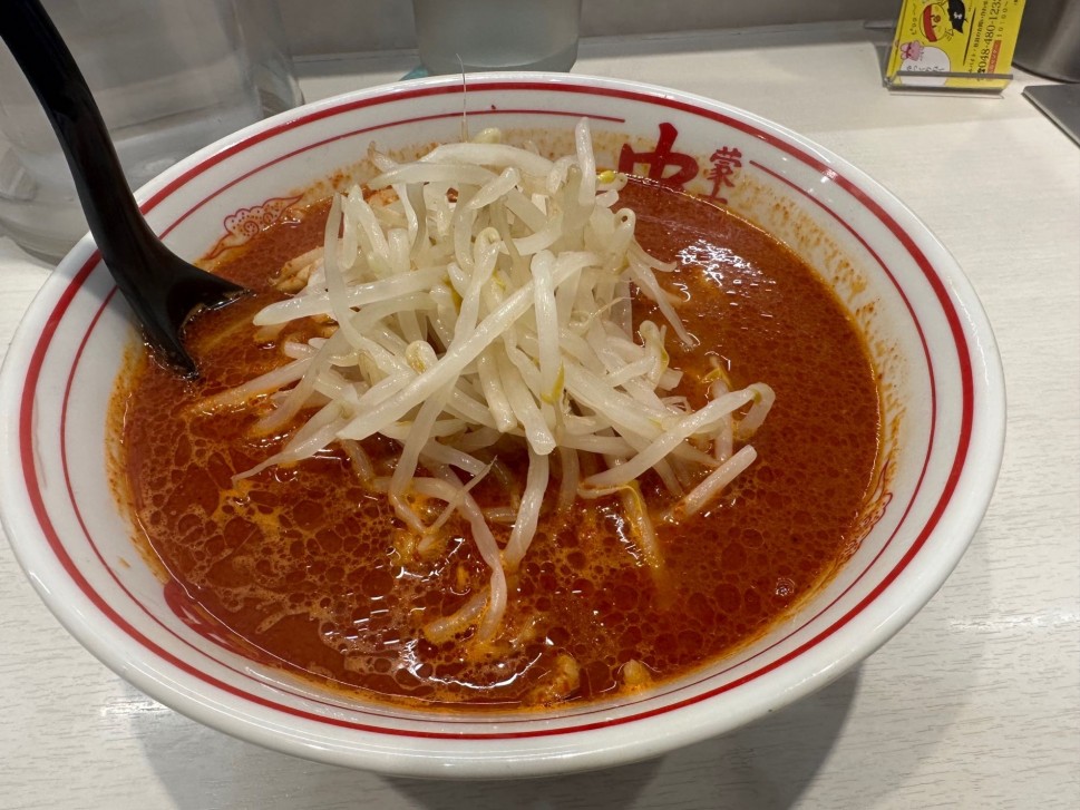 真っ赤なスープから麺を掻き分け一口🍜うん、ウマイ❗️思ってたより即効性の辛さがあり、口の中がいい感じにヒリヒリしてきます。麺は大盛り相当で結構なボリュームですが一気に完食❗️