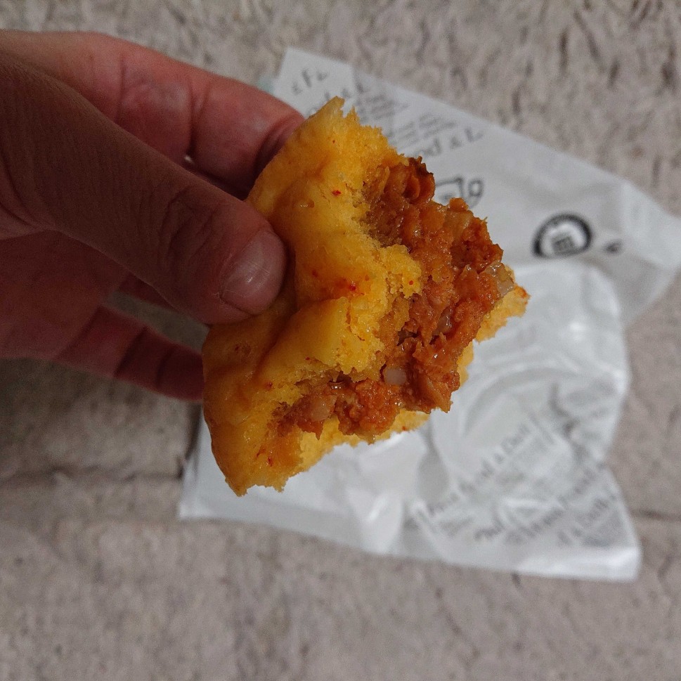 肉あんは唐辛子が効いてて、かなり口の中がヒリヒリします。辛いけど美味しいです。