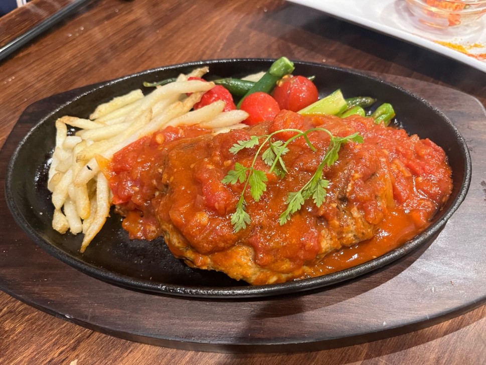 ハンバーグにも唐辛子が練り込まれているみたいで、