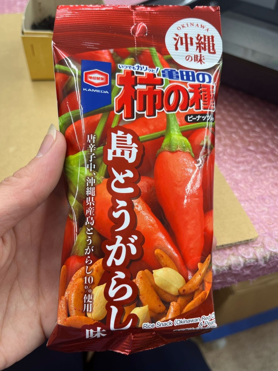 普通の柿ピーよりは少し辛いかな。