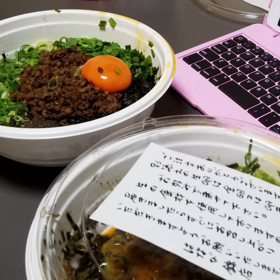 2辛でも汗が吹き出るほど辛かった。でも卵黄とネギと肉の絡みが絶妙で美味しい!!