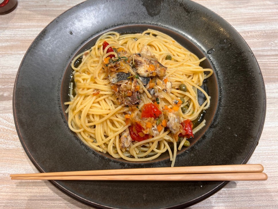 辛さ増しにしていただきましたが、やっぱり物足りず…卓上の辛味ソースを+しました!乗ってるイワシが柔らかくておいしかったです☺️