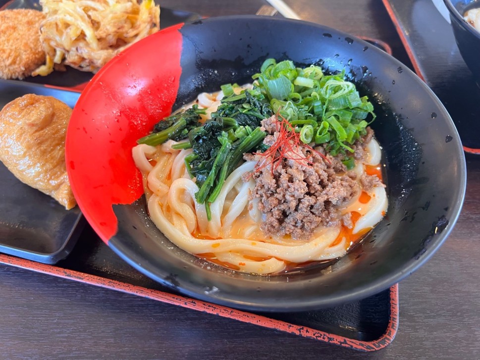 ラー油のピリ辛と胡麻の濃厚なスープが良く合います🤤