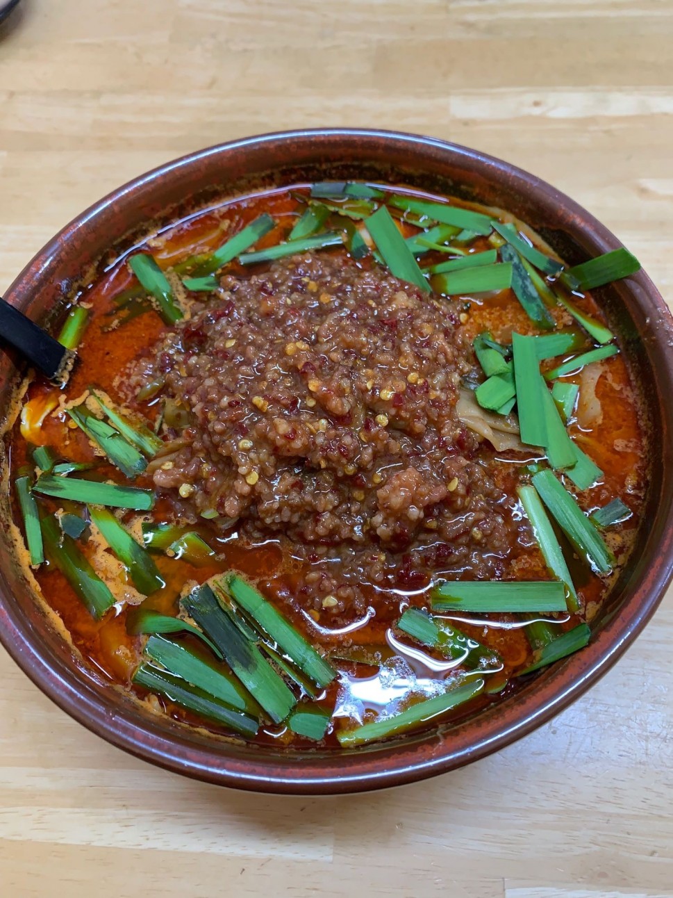 サービスの生卵のおかげで完食しましたが、私的にはかなりの辛さ。でも、味噌は甘い味付けなので美味しかったです。