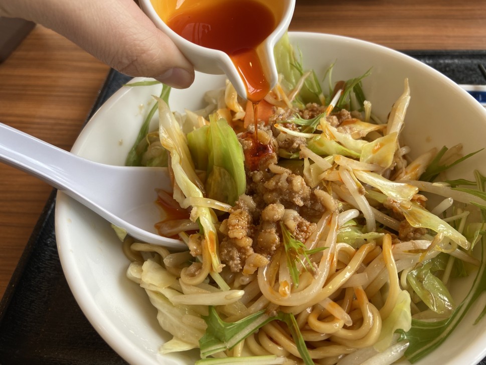 足しながら食べるまぜ麺です。