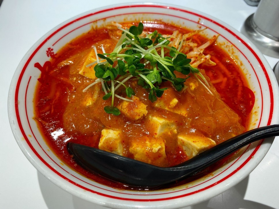 ピリ辛 辛さは足りないけど乗ってる餡も熱々でうまい🍜