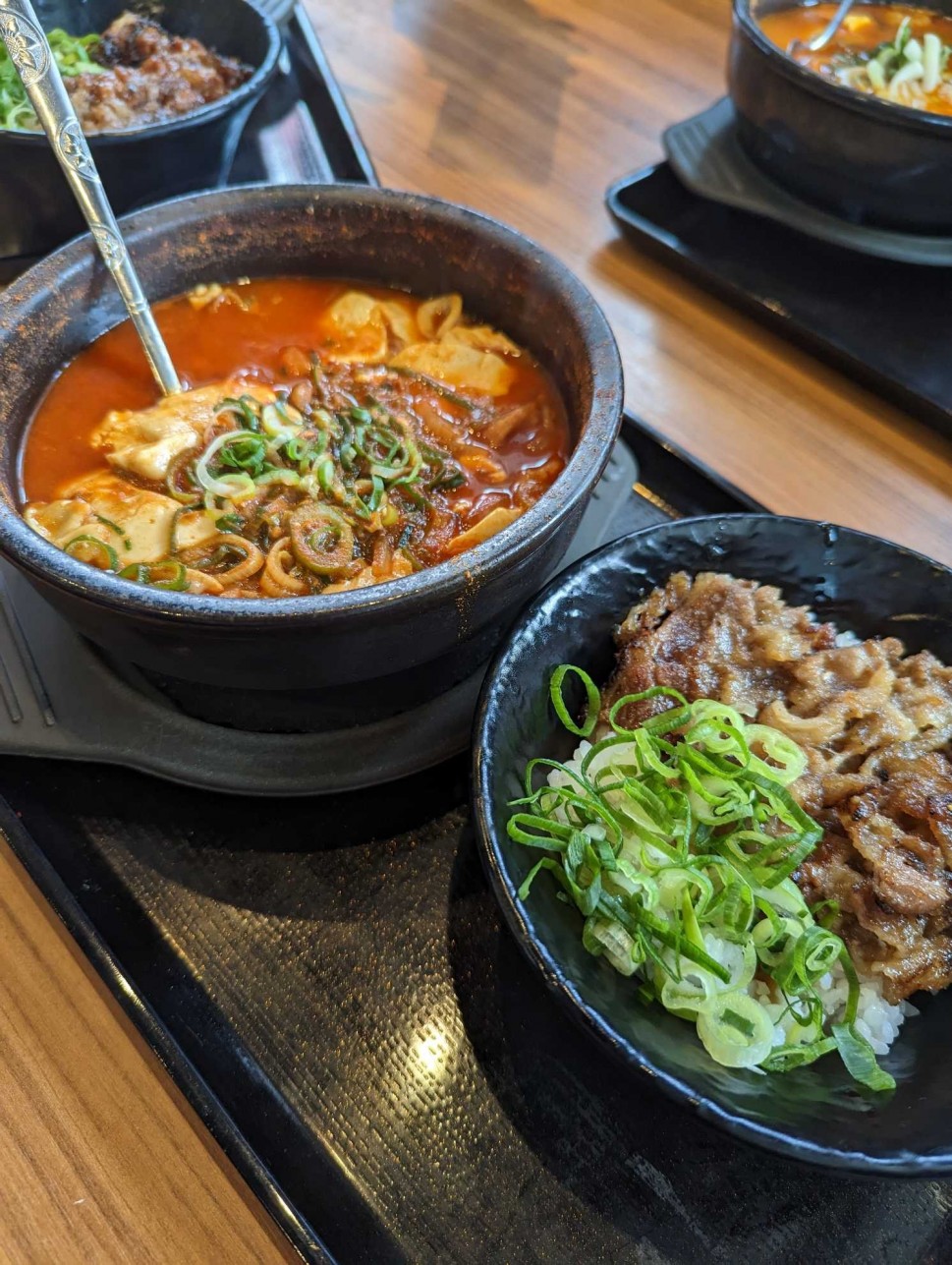 食べ始めに変なとこに入って大打撃(笑)相変わらず辛いで美味しかった😋食べ慣れたカプサイシンパウダーの味がした‼️カルビ丼もまた美味い😋