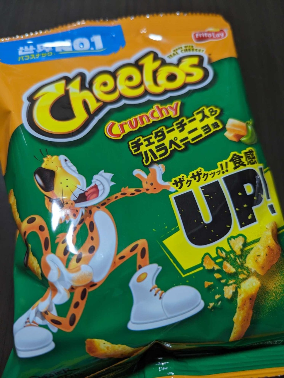 食べたらチーズとコーンスナックの香ばしい味が口に広がり後から舌が👅ピリピリします(*^^*)とっても美味しい✨今夜のお酒🍻のお供です♡