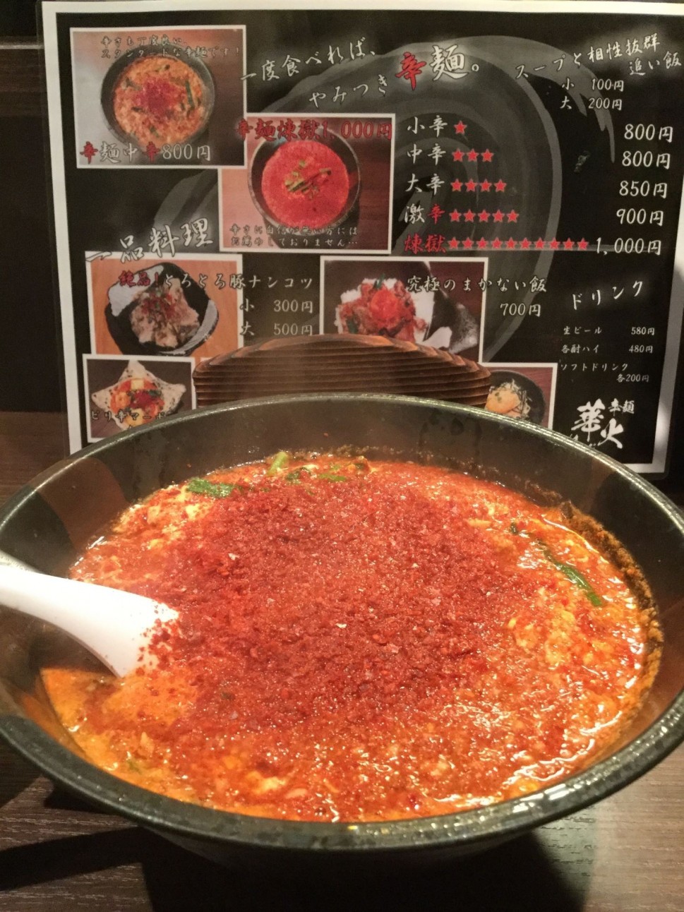 一味粗めで、同じよーな辛麺屋さんのよーに色ほど辛くないか思うたら、ちゃんと辛いやんけ