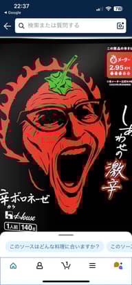 2.70KMと辛ジャッジ kenteeex マイ辛値:2.87KM 担々麺の父・豊臣秀吉 2日前 いつも混んでるこちらのお店。平日の午後3:00あたりを狙って行って来ました!並びはありませんが、ほぼ満席😱...もっと見る 東京都:楊國福マーラータン 東京八王子店麻辣湯 ④激辣 2.39KM 辛いいね 9人 コメント 1件 3.10KMと辛ジャッジ kenteeex マイ辛値:2.87KM 担々麺の父・豊臣秀吉 6日前 以前、ここの10辛3痺を3.92KMと辛ジャッジしたのですが、今回は10辛4痺で3.10KMとします🤭人間って...もっと見る 東京都:りとる麻辣湯とおにぎりのお店(りとるマーラータン)麻辣湯 10辛4痺 2.79KM 辛いいね 12人 コメント 0件 2.99KMと辛ジャッジ kenteeex マイ辛値:2.87KM 担々麺の父・豊臣秀吉 22日前 最近オープンした七宝麻辣湯八王子店に行ってきました!まずは5辛にチャレンジ!うん、ちょうどいい感じです。課金...もっと見る 東京都:七宝麻辣湯(チーパオマーラータン)八王子店麻辣湯 5辛 2.67KM 辛いいね 16人 コメント 0件 2.74KMと辛ジャッジ kenteeex マイ辛値:2.87KM 担々麺の父・豊臣秀吉 1ヶ月前 激クエも、第4段まで進むとなかなかの出費🤣🤣🤣でも、このTシャツを手に入れたくて脇目も振らずに突き進みました😅...もっと見る ハウス食品【統合済み】しあわせの激辛 ラーメン 2.74KM 2.66KM 辛いいね 11人 コメント 6件 2.95KMと辛ジャッジ kenteeex マイ辛値:2.87KM 担々麺の父・豊臣秀吉 2ヶ月前 うーん!とても美味しい✨6辛だと辛すぎず、ちょうどいい感じ‼️今日は楽しみにしてたイカ団子がなかったので、ま...もっと見る 東京都:りとる麻辣湯とおにぎりのお店(りとるマーラータン)麻辣湯 6辛2痺れ 2.63KM 辛いいね 14人 コメント 0件 4.40KMと辛ジャッジ kenteeex マイ辛値:2.87KM 担々麺の父・豊臣秀吉 2ヶ月前 タイ土産でいただきました。こんにゃくをイカ風に加工したおつまみです。8g入りの小袋が6袋入っています。めちゃ...もっと見る クルーブセンブクプルンロットマーラースートペット 4.08KM 辛いいね 14人 コメント 0件 2.93KMと辛ジャッジ kenteeex マイ辛値:2.87KM 担々麺の父・豊臣秀吉 2ヶ月前 コレは美味いっ‼️今回はそのまま食べましたが、次回はご飯にのせて食べてみたいなぁ〜✨もっと見る ハウス食品【統合済み】しあわせの激辛 麻婆豆腐 2.93KM 2.55KM 辛いいね 15人 コメント 0件 2.70KMと辛ジャッジ kenteeex マイ辛値:2.87KM 担々麺の父・豊臣秀吉 2ヶ月前 しょっちゅう近くを通るのに、営業時間の関係で行けなかった「からみそや」さん!辛さ20倍の上が50倍。辛メーター...もっと見る 静岡県:からみそやからみそやラーメン 20倍 20倍 2.60KM 辛いいね 13人 コメント 0件 3.25KMと辛ジャッジ kenteeex マイ辛値:2.87KM 担々麺の父・豊臣秀吉 2ヶ月前 ハウス食品さんの幸せの激辛シリーズ!「激辛クエスト」というキャンペーンをやってますね〜っ‼️その第一関門、第...もっと見る ハウス食品【辛・オブ・ザ・イヤー2024カレー部門】しあわせの激辛・チキンカレー... 2.79KM 辛いいね 13人 コメント 0件 2.95KMと辛ジャッジ kenteeex マイ辛値:2.87KM 担々麺の父・豊臣秀吉 2ヶ月前 で、第2クエストは、パスタソース‼️辛ボロネーゼと辛ボナーラのセットですが、こちらはより辛い方の辛ボロネーゼ...もっと見る ハウス食品幸せの激辛 辛ボロネーゼ 2.83KM 辛いいね 12人 コメント 0件 0.80KMと辛ジャッジ kenteeex マイ辛値:2.87KM 担々麺の父・豊臣秀吉 2ヶ月前 ハウス食品さんの「激辛クエスト」キャンペーンも楽しいですが、ニュータッチで有名なヤマダイ株式会社さんの、「凄麺...もっと見る ヤマダイ株式会社埼玉スタミナラーメン 0.69KM 辛いいね 9人 コメント 0件 1.34KMと辛ジャッジ kenteeex マイ辛値:2.87KM 担々麺の父・豊臣秀吉 2ヶ月前 そしてそして!激辛好きが集う「辛メーター」と同様に、凄麺好きが集う「すごめんち」の存在を知りました!...もっと見る ヤマダイ株式会社純豆腐チゲうどん 1.16KM 辛いいね 10人 コメント 0件 3.92KMと辛ジャッジ kenteeex マイ辛値:2.87KM 担々麺の父・豊臣秀吉 3ヶ月前 美味しいっ‼️濁った濃いめのスープが最高です!ここはリピ確定ですっ💓10辛だと、辛くてとても美味しいのです...もっと見る 東京都:りとる麻辣湯とおにぎりのお店(りとるマーラータン)麻辣湯 10辛3シビ 3.62KM 辛いいね 14人 コメント 0件 3.60KMと辛ジャッジ kenteeex マイ辛値:2.87KM 担々麺の父・豊臣秀吉 3ヶ月前 超〜久しぶりに中本さんへ!2年半ぶりなので、公式サイトのポイントは消滅してるし、クーポン利用を言うタイミングを...もっと見る 東京都:蒙古タンメン中本 立川北極やさいシャキシャキ 4倍 3.29KM 辛いいね 16人 コメント 2件 0.86KMと辛ジャッジ kenteeex マイ辛値:2.87KM 担々麺の父・豊臣秀吉 3ヶ月前 んん!なかなか美味しい!次回もたべたい✨もっと見る 東京都:丸源ラーメン 八王子南大沢店ピリからあげ 0.74KM 辛いいね 14人 コメント 0件 1.96KMと辛ジャッジ kenteeex マイ辛値:2.87KM 担々麺の父・豊臣秀吉 3ヶ月前 タッチパネルの辛味を押す回数で辛さを設定できるシステム‼️10辛以上も可能らしいのですが、ラー油がおびただしい.