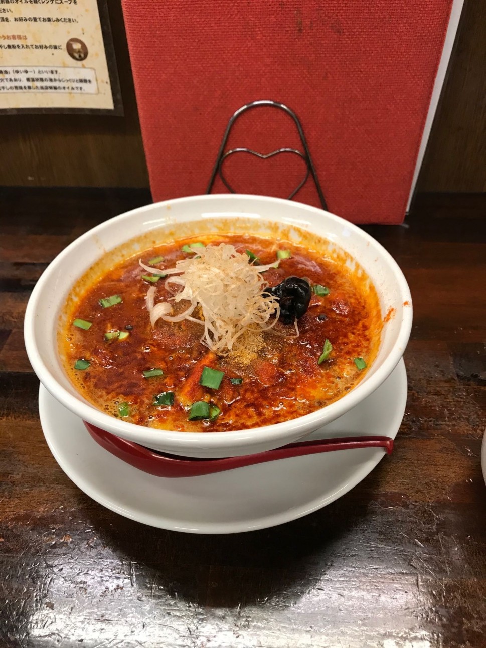 朝天麻辣白湯麺なんですが、白湯の面影のカケラもないその外観に一瞬ひるみました。そしてスープを一口!か、辛い😱6段階中の4段目にした割には辛い‼️ここでもう一回ひるみました😅しかし、食べ進むと以外と慣れてきて、無事完食🙆♂️苦手な花椒はかなり控えめでとても美味しくいただきました‼️次はこの一つ上の、ワイヤデという辛さに挑戦します😍