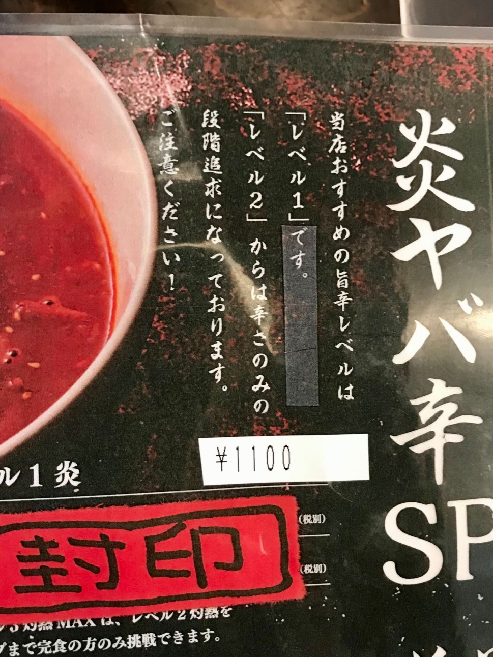 コレは辛いっ😱以前はレベル1〜3まであったようなんですが、あまりに辛いためレベル2,3は封印されていました。体へのダメージがペヤング獄激辛よりも大きいので4.3KMにしました!スープ美味しいのですが、完飲してしまうと危険です!(僕はもちろん残しました✌️)