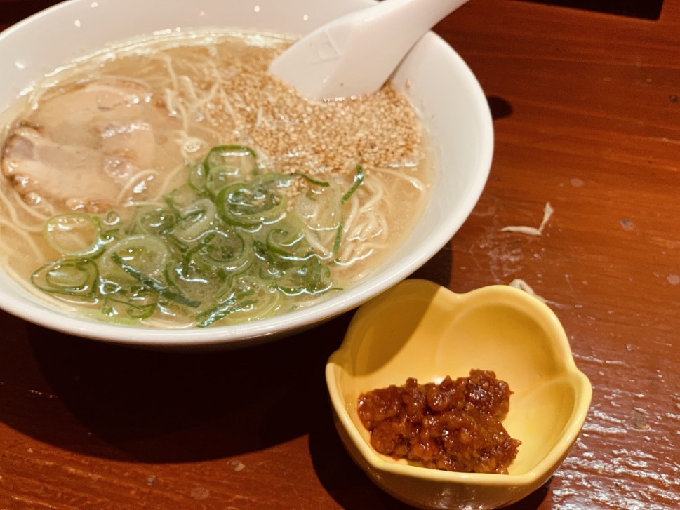 屋台系博多豚骨ラーメンで一番好きな 日本晴れのラーメン。辛肉味噌全部いれると、子供が辛い👶🧒と言い出しそうな辛さです!