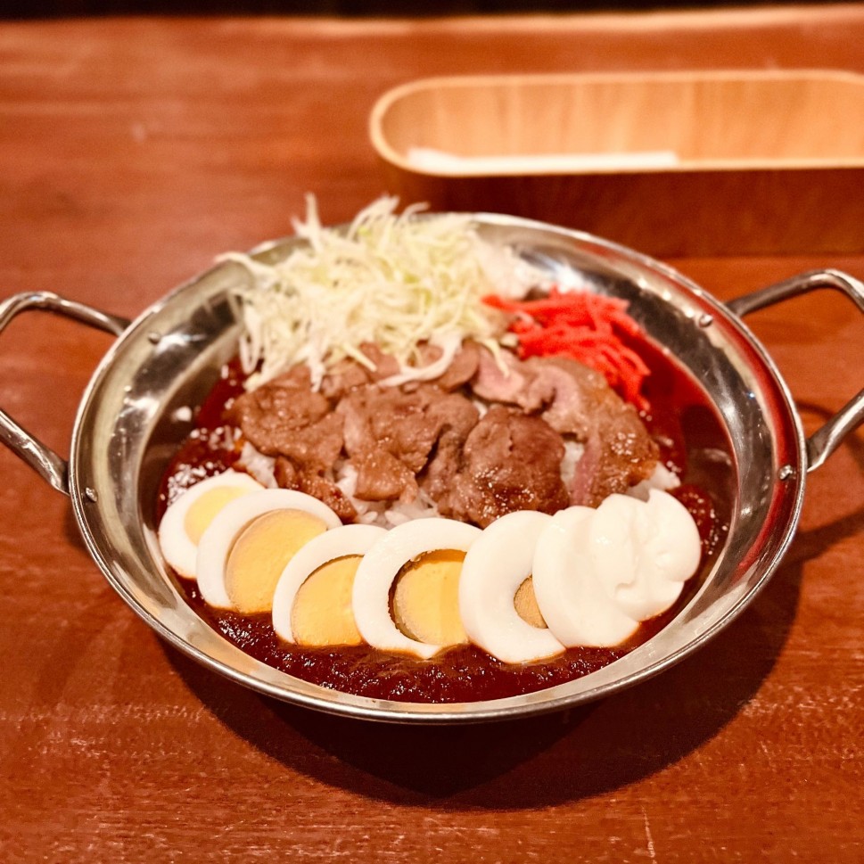 ポークステーキの旨味と、しあわせの激辛カレーの甘激辛がマリアージュしまくって最高でした!紅生姜やキャベツマヨネーズとかでも味変して🙆♂️🔥🎰、、、美味した!