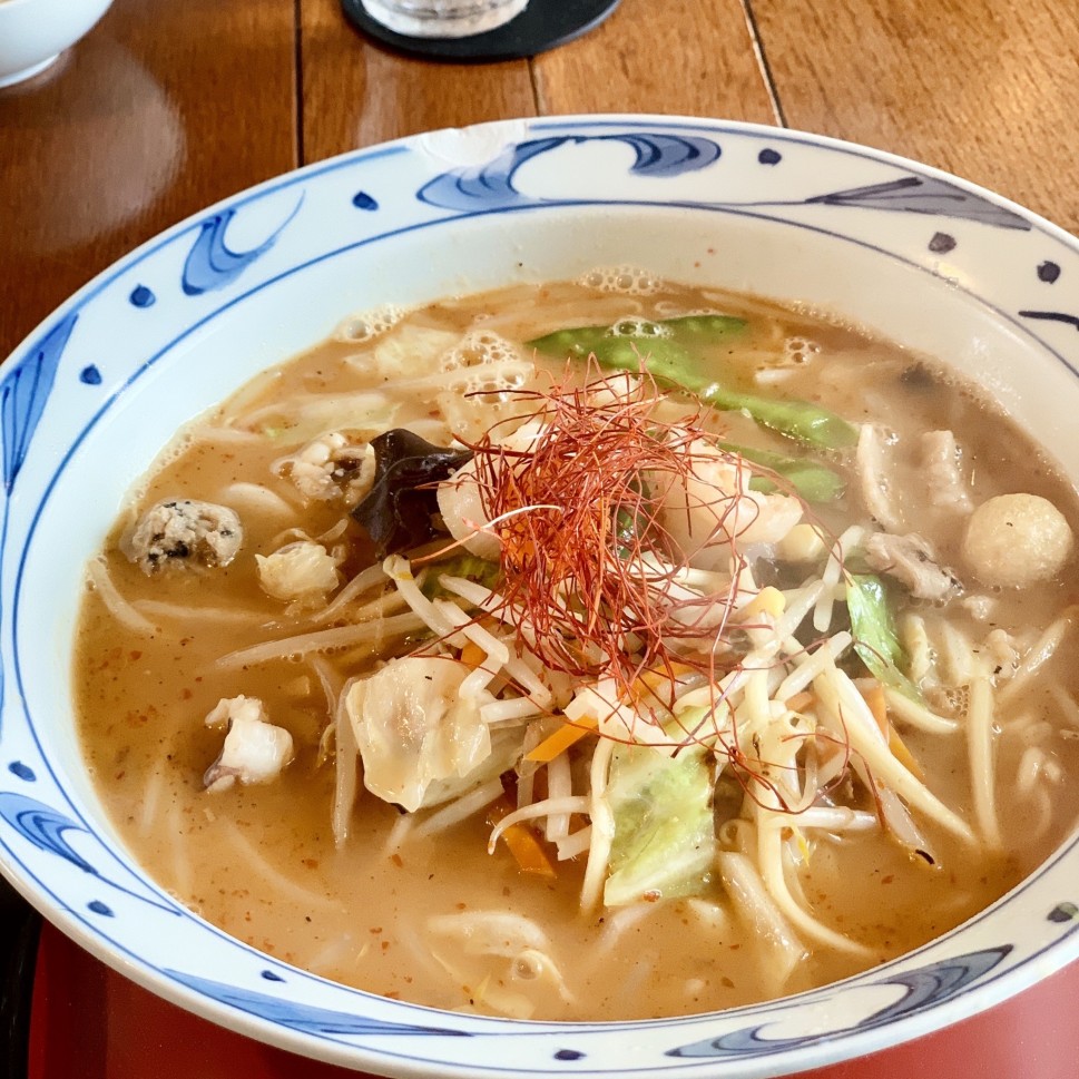 ちゃんぽんで有名な阿蘭陀珈琲館。ミルクレープも美味しい、あ、脱線🛤。優しいお味でした。辛さは皆無です。