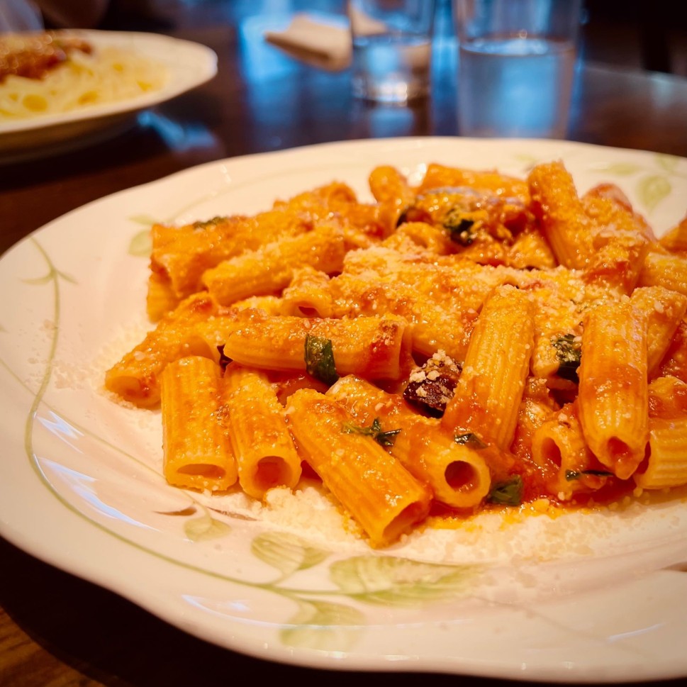 ほーーんのりと辛さが感じられます。ニンニクが効いたトマトソースの奥に、これまたほんのりバジルが🍝
