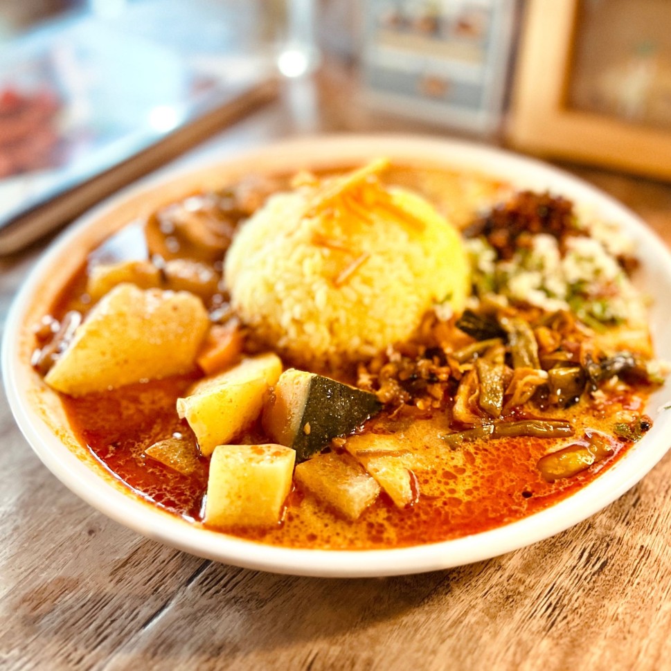 極彩色!旨味鮮やか!豆・ダイコン・チキン・サンボールと、ミールスのように無限に変化する味が楽しめます🔥リアルレッド3倍も薄まりますが、しっかり辛さは蓄積され最後には微妙に3超えるかな!?くらいには。あー、野菜もとれてもホント天国のようなスリランカカリーなのであります!