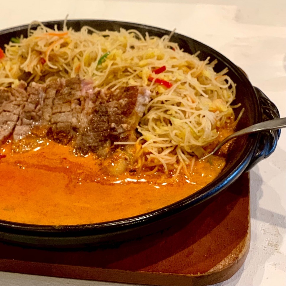 シーフードヌードル&カレーに、ご飯入りハーフ肉🦐🍖🔥 激辛そばメシに海老が舞い降り肉踊る🕺🏻 これ最強クラス👑