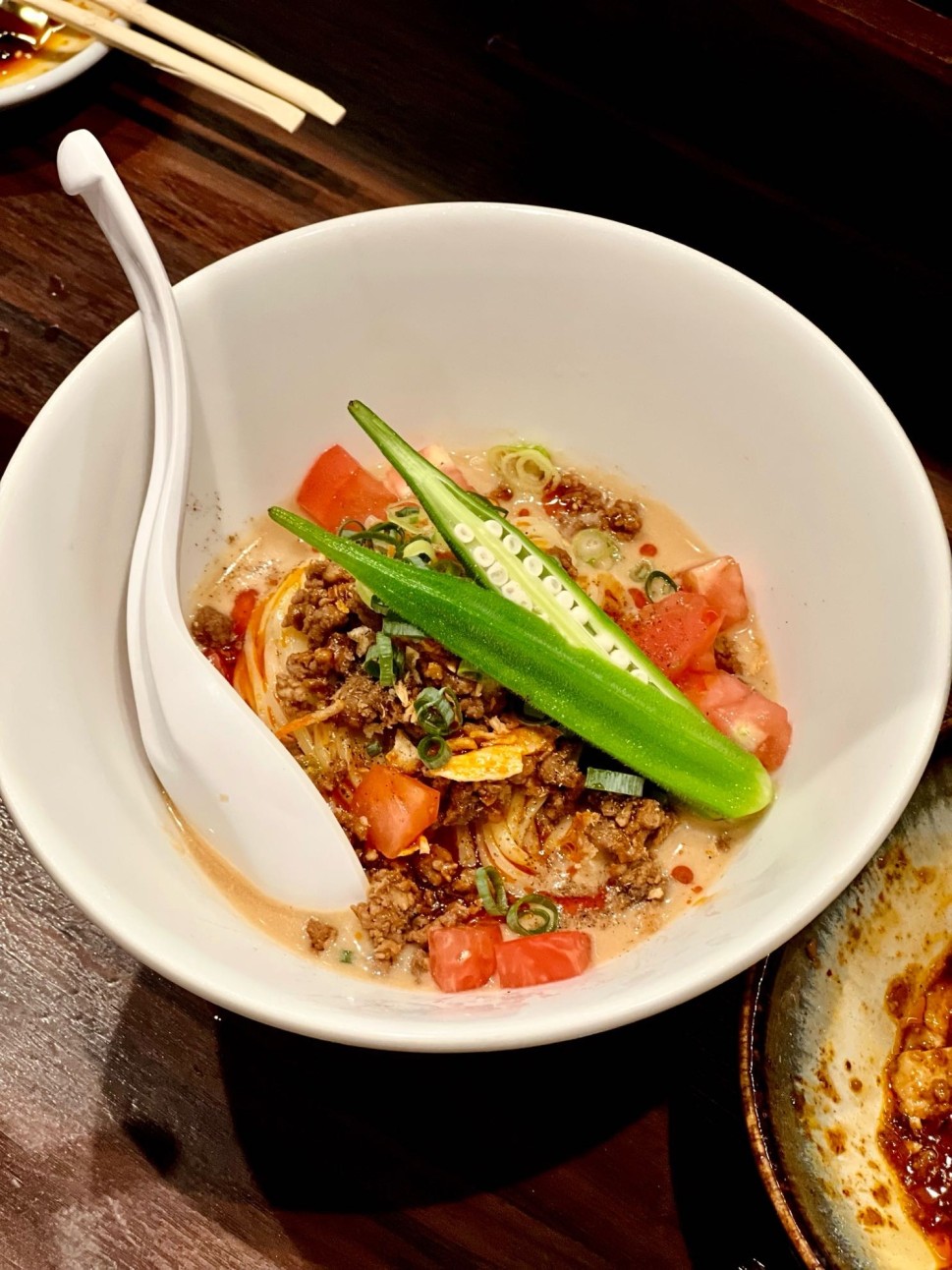 麺がつるつるシコシコ、お肉がゴロゴロに、おくらトマト🍅と、とにかくフレッシュな冷やし担々麺🧒