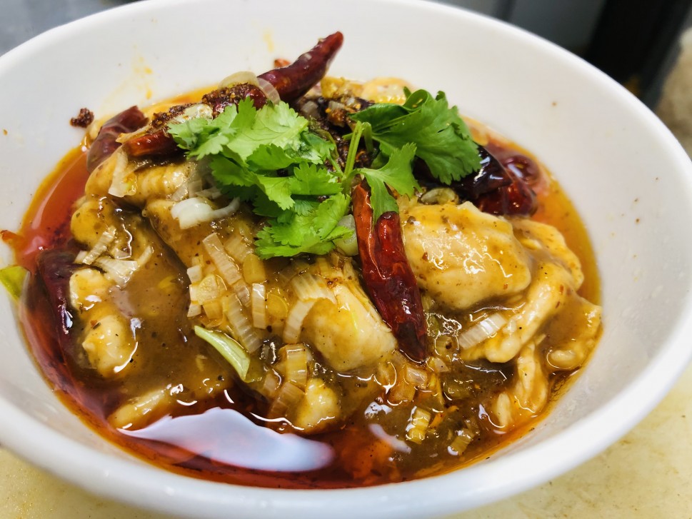 但馬産の鶏ムネ肉を使い、あっさりとした辛さ