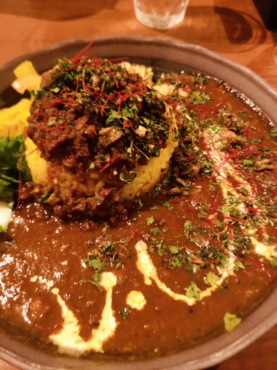 一口目は甘さが強い印象ながら、それでいて徐々に辛さも出てくる、スパイスカレー!知らずのうちにじんわり汗をかいてました