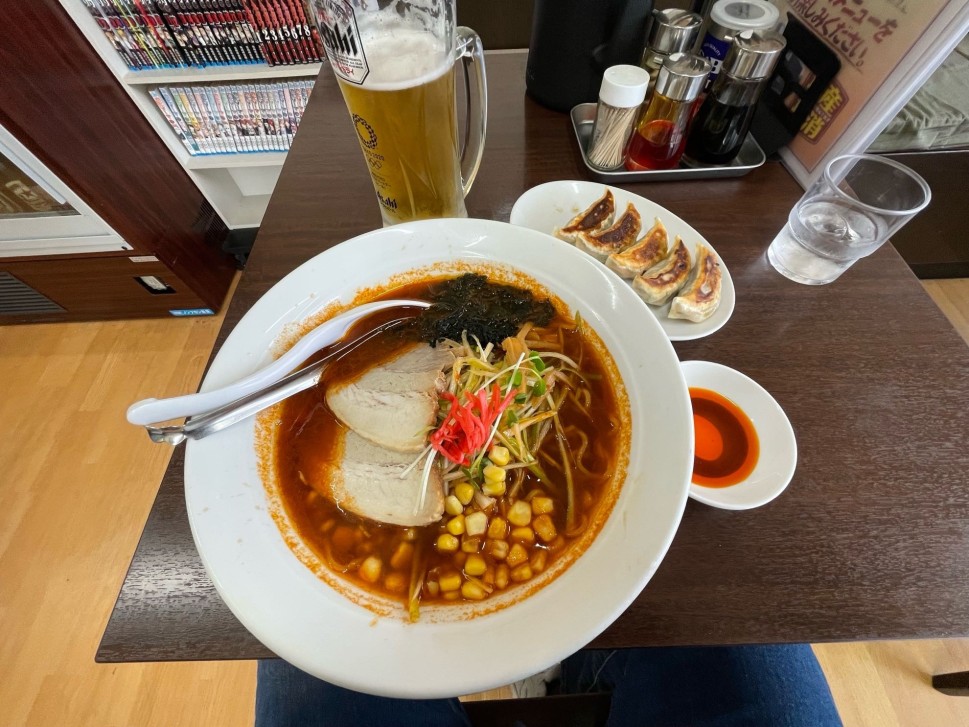 見た目は激しく辛そうとは感じないですが、辛いようで🥵イイですね👍 ビール🍺と餃子(ラー油多め)と来ればもはや文化ですね😅