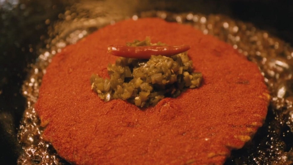 こんなに綺麗に赤唐辛子かけてあるなんてスゴイ…。辛そうだけど(絶対辛いやろ😅)食べたい!怖いけど見てみたい一品です!