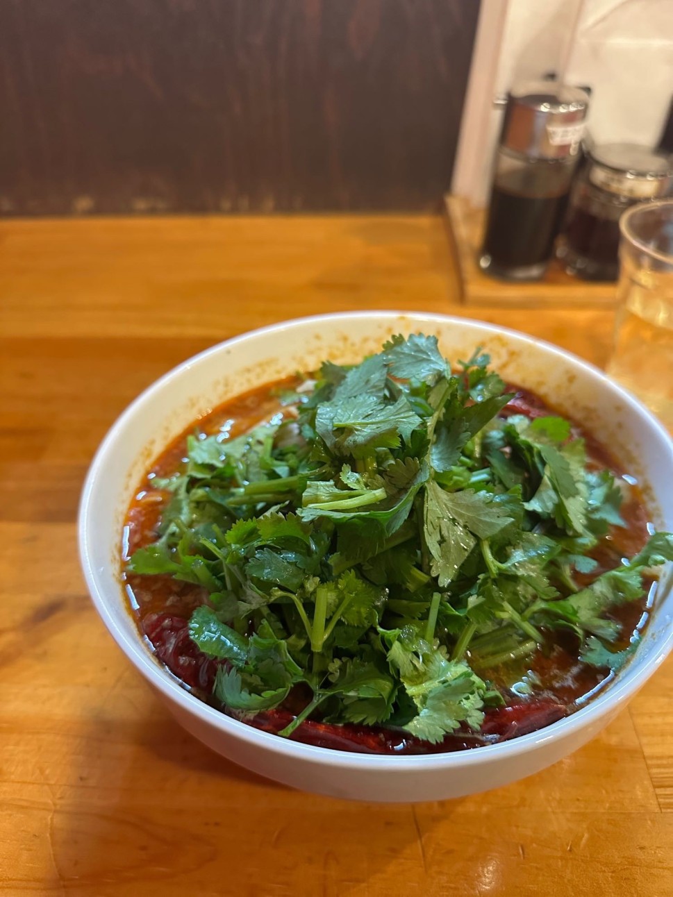 辛い!って感じではないですが、薬膳なので気付いたらじわじわ汗をかいてて、美味しく完食できました☺️