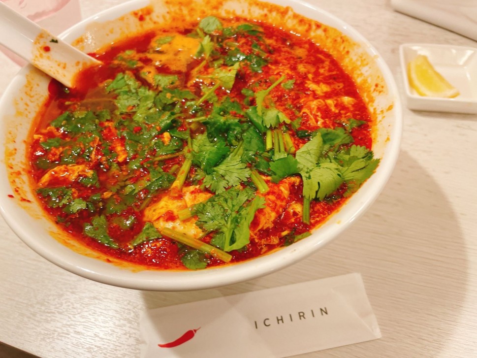 パクチー辛麺に、麺はスタンダードの蒟蒻麺!