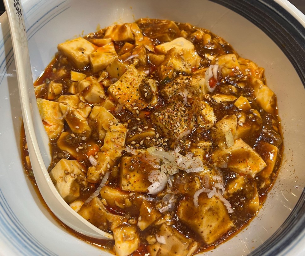 麻婆餡にコクがあり、かつ麻婆餡と太麺がしっかり絡んでいるので、食が進みます。