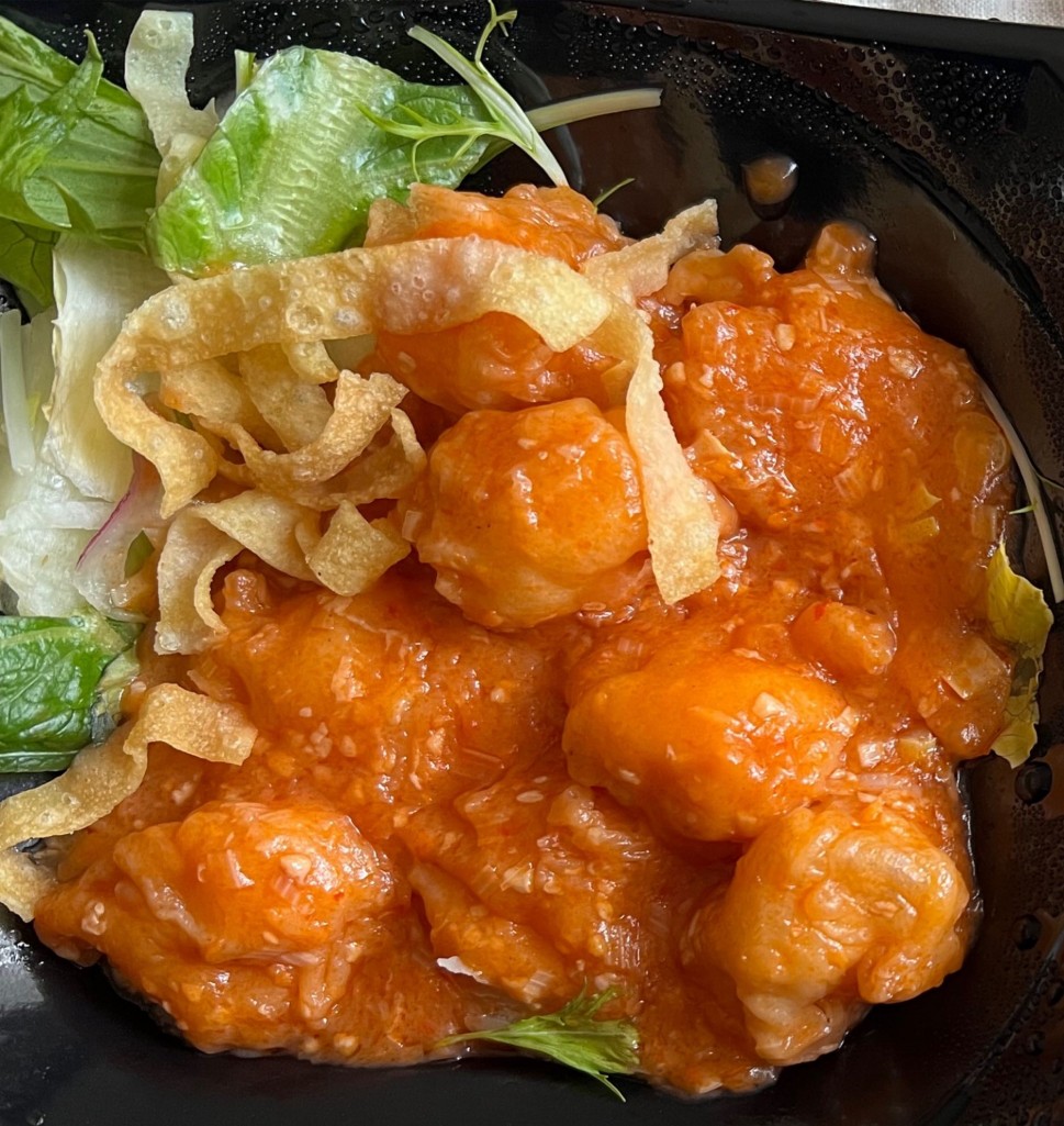 海老の食感が良く、また辛味がさほど感じられないチリソースです。
