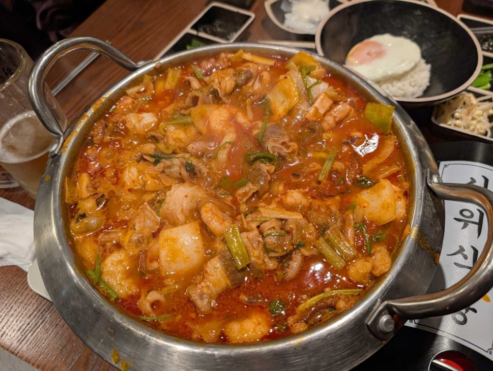 たこ、ホルモン、エビの入った韓国なべです。優勝。