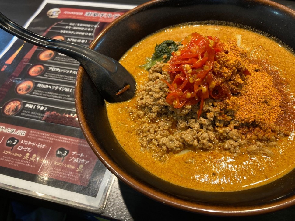 味は抜群!!辛さと共に美味しさで満たされまさに整ったぁ〜〜といった感じ💓ではあるのですが…汗と鼻水がとまらず胃がキリキリ笑笑でも、まだ上には上があるのでさらなる高みを目指します(⌒▽⌒)و