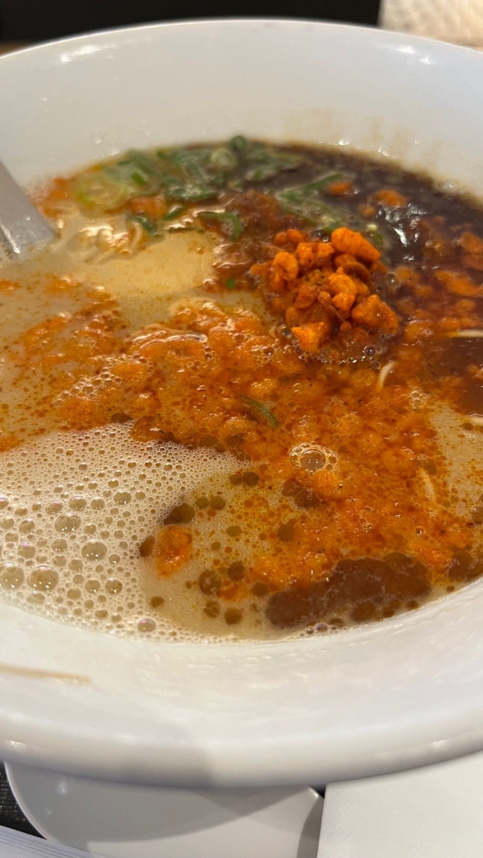 程よく辛い。トッピングの胡麻ペースト?で味変したらまろやかになって美味しかった〜
