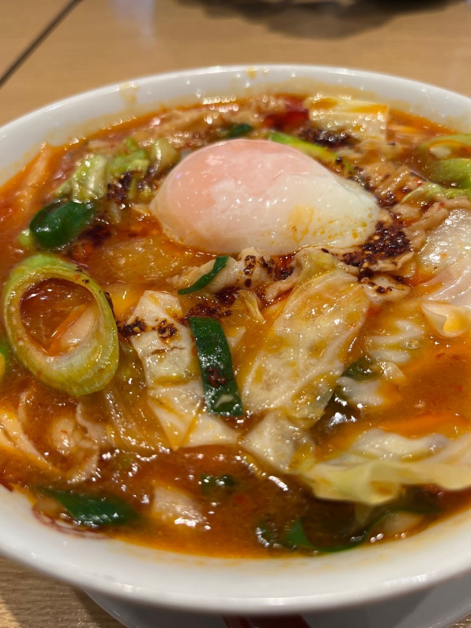温玉とたっぷりの野菜で食べ応えのあるラーメンでした。