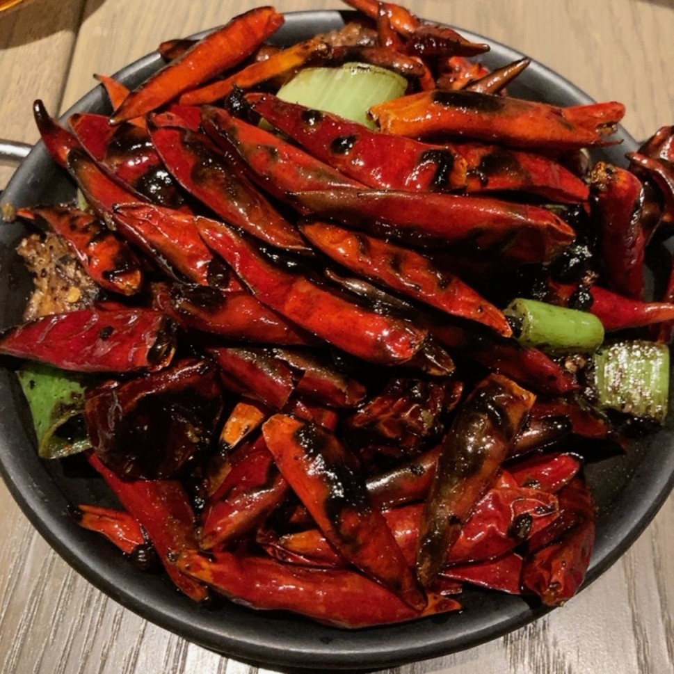 モリモリ唐辛子をかきわけて鶏肉を食べると実は全然辛くないです😂