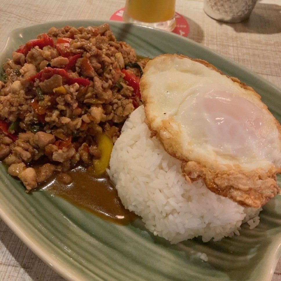 店員さんに「どれが1番辛いですか?」と聞いたところ、どれも全部辛くできるとの事だったので店員さんおすすめのガパオライスを激辛で頂くことに🙏