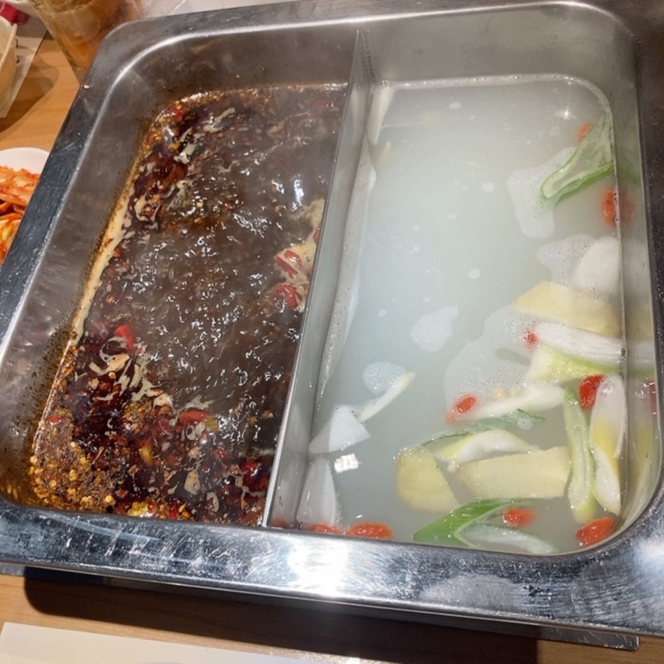 二色火鍋の辛い方のスープは超辛にしてもらいました!