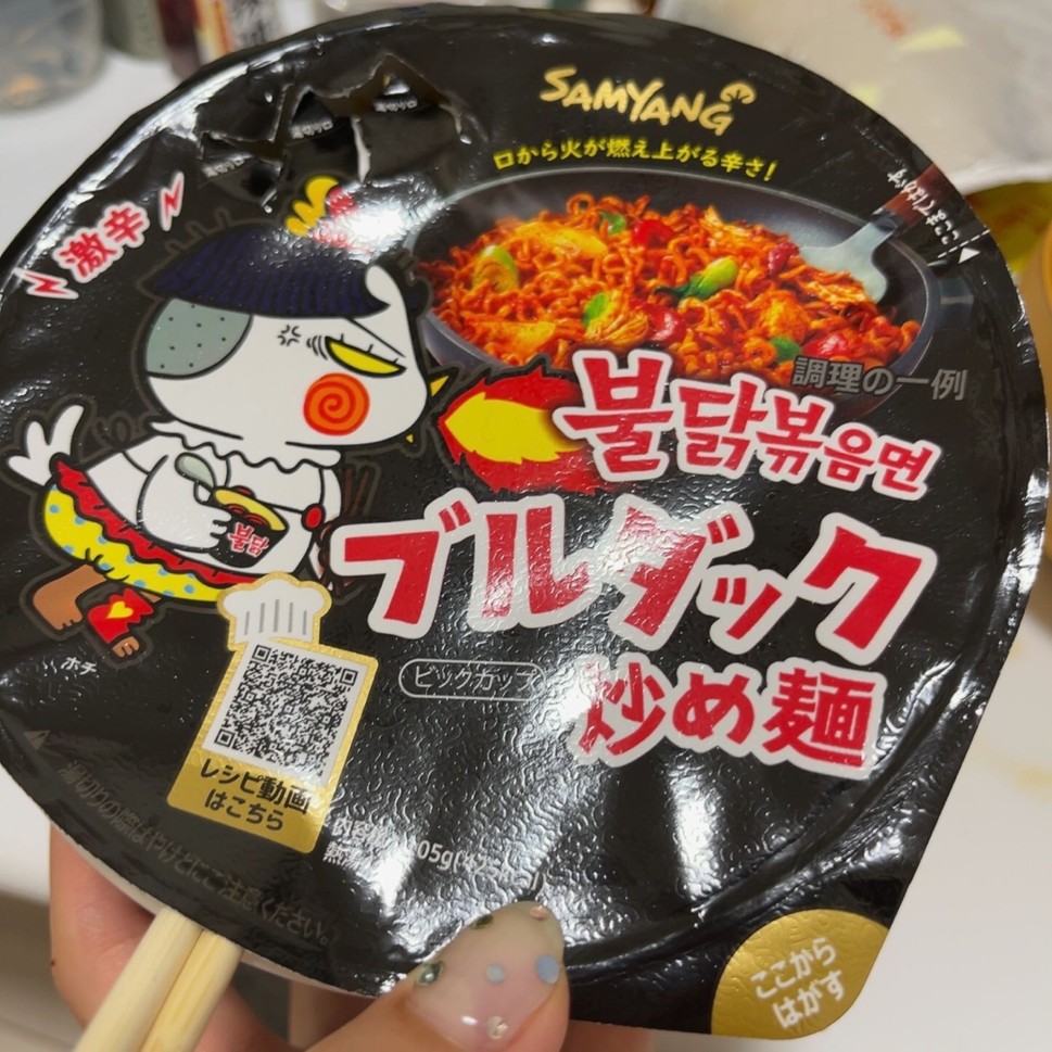 ブルダック炒め麺のカップ麺バージョンがコンビニに売ってたので買ってみましたー✨