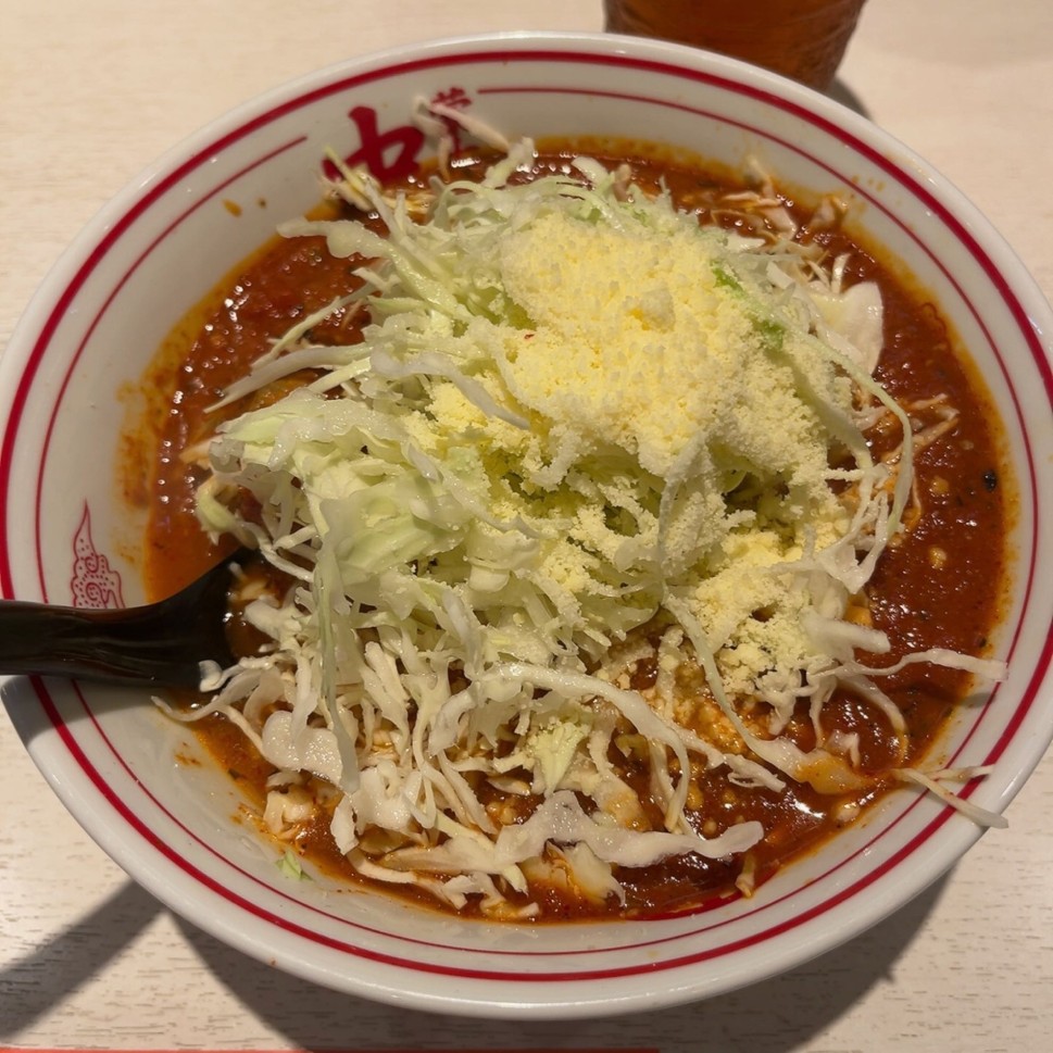 カラトマサは中本の味噌と唐辛子のスープにトマトとアサリを加えたラーメンで、キャベツが乗っているのが特徴です🎵