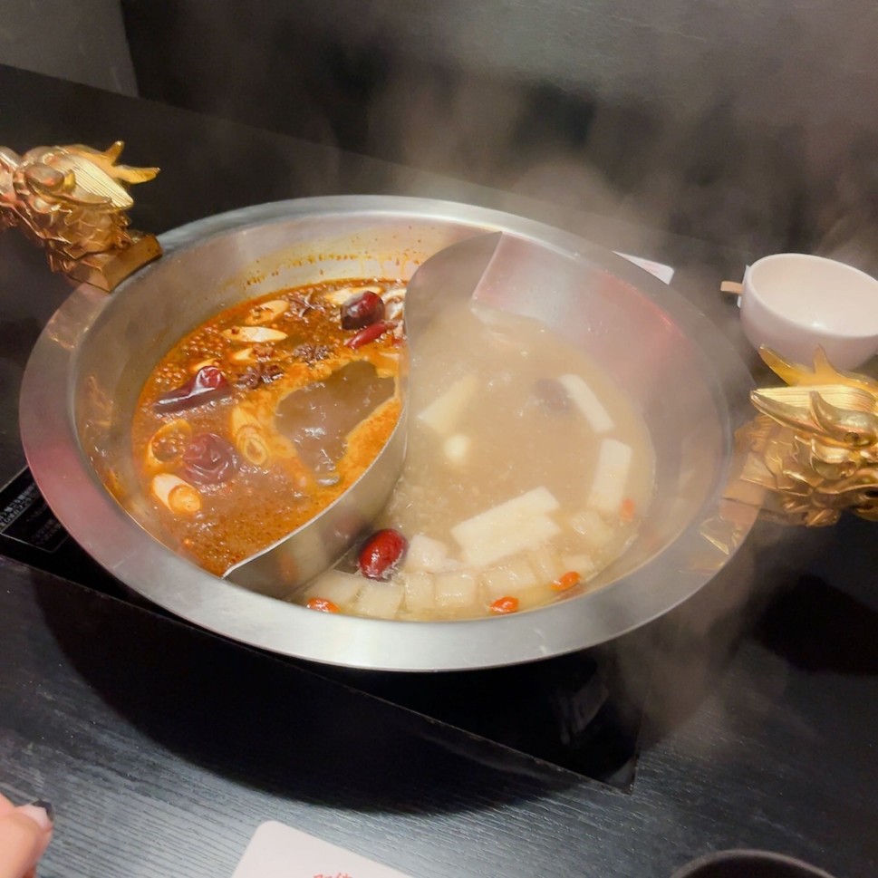 まずはスープを麻辣スープと白湯スープ1:1で割って飲むのがおすすめです☺️